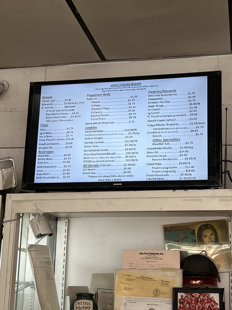 Jack’s Italian Bakery offers a wide selection of freshly baked bread, including Dinneroll and Italian loaves. They also have pizza options such as Dough and Large Unbaked pizzas available. For those looking to create their own dishes at home, Jack’s Italian Bakery offers shredded mozzarella and sliced pepperoni by the pound. The bakery provides takeout and delivery services, accepts credit cards, and has private parking available for customers. Located in Melvindale, MI, Jack’s Italian Bakery delivers delicious Italian baked goods with convenience and quality. The warm and inviting atmosphere adds to the overall dining experience, making it a must-visit for bread and pizza lovers alike. Overall, Jack’s Italian Bakery provides a delightful mix of traditional Italian recipes with a modern twist, creating a unique and delicious dining experience for all.